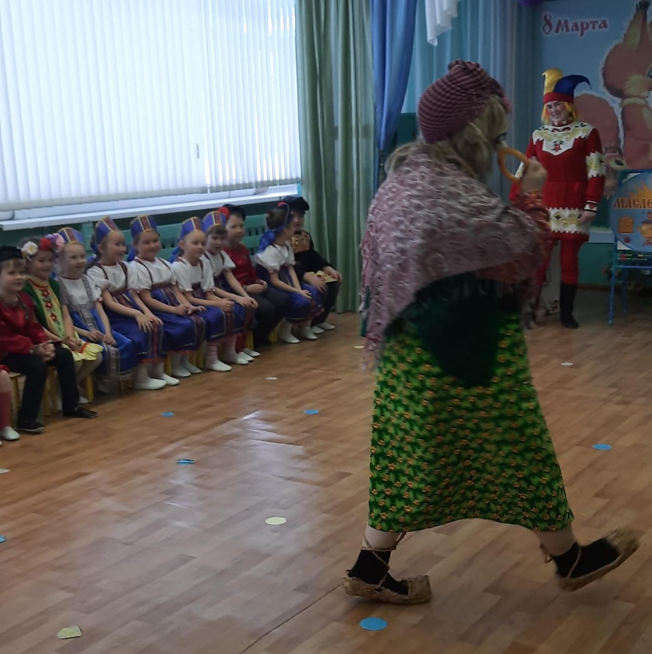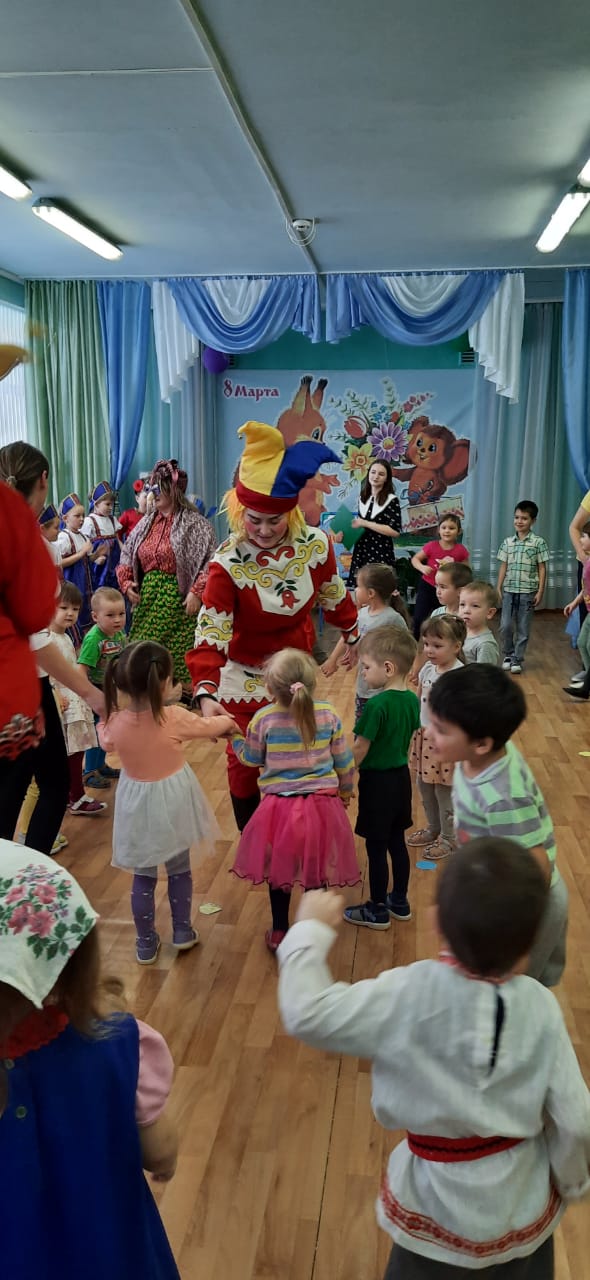 Дети нарядные, весёлые в предвкушении праздника и их надежды оправдались. На праздник к детям пришел известные герои Шпилька и Клепа, Царь Горох и Скоморохи, «Клоун Бантик» - было очень весело. На утреннике наши дети рассказывали праздничные стихотворения, пели красивые песенки, танцевали и участвовали вместе со своими мамами в конкурсах, своими стихами, танцами, песнями дети подарили мамам и бабушкам много добрых слов, нежности и внимания.