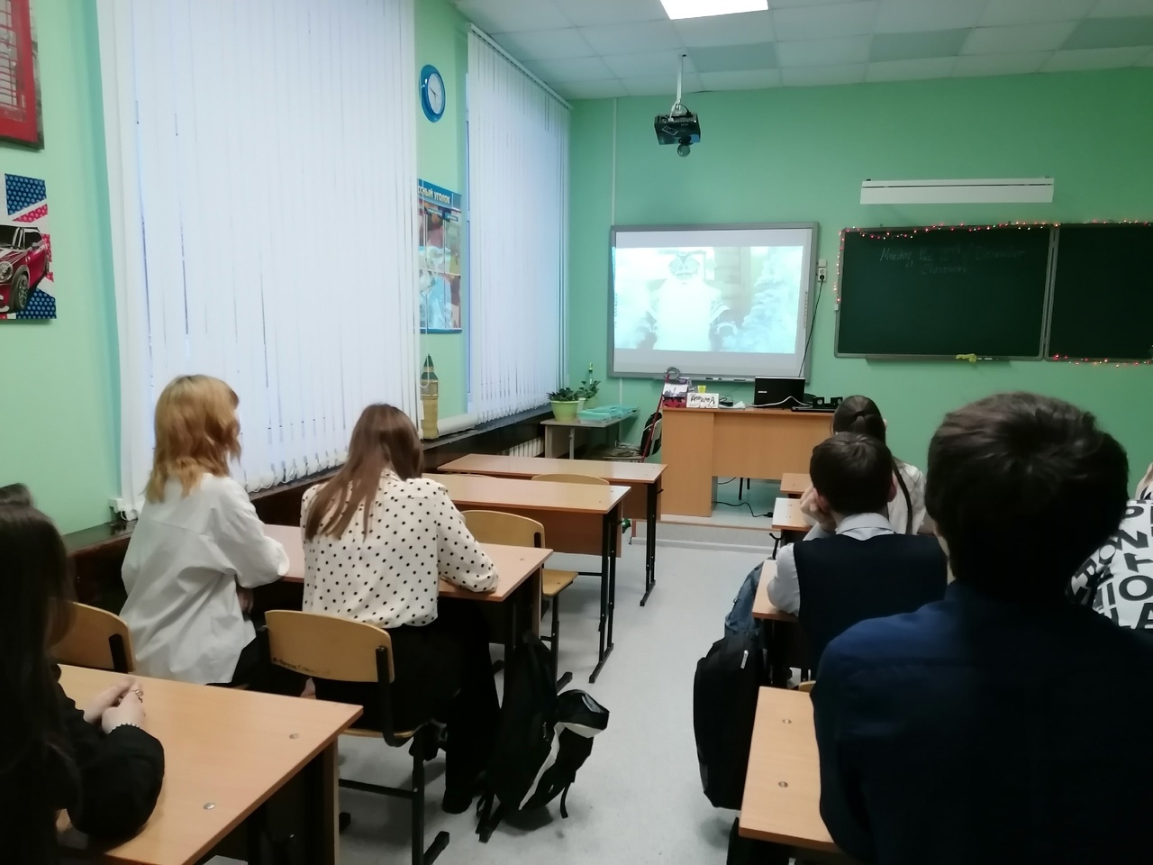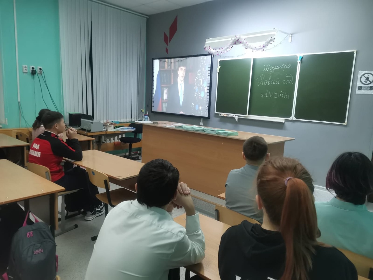 В конце занятия школьников поздравил Дед Мороз. В видеообращении пожелал всем крепкого здоровья, счастья, побольше радостных дней, делать как можно больше добрых дел, исполнения желаний, любви и уважения к родителям.