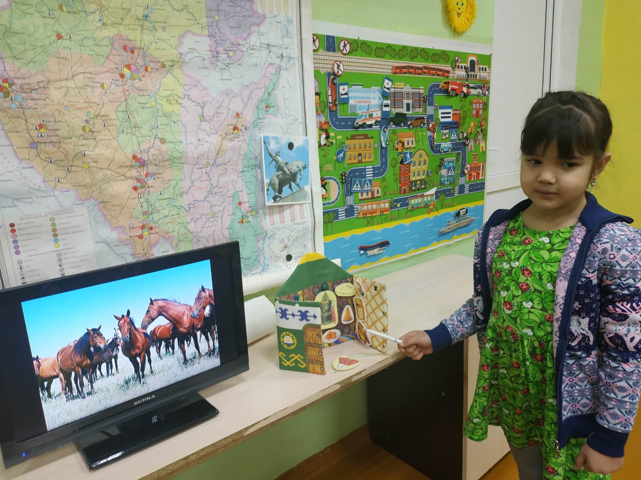 В рамках тематической недели, посвящённой празднованию "Дня башкирского языка", в до школьной группе Филиала НОШ д. Турушла прошли познавательные и развлекательные мероприятия с детьми, направленные на приобщение дошкольников к языку, культуре и традициям башкирского народа. На занятиях, в играх и самостоятельной творческой деятельности дети в доступной форме знакомились с историей образования и развития Республики Башкортостан, её героическими личностями. Читали народные сказки, рассказы и поэтические произведения башкирских писателей и поэтов для детей;рассматривали картины и иллюстрации о быте башкирского народа "Башкирский мёд" А. Ситдиковой, "Пряжа" Т. Гайфуллиной; рисовали"Пиала", "Елян", "Ложка для бишбармака". Играли в игру"Юрта". Слушали музыкальные произведения башкирских композиторов, танцевали танцы с элементами народных костюмов. Детям было интересно. Они много узнали нового. В игровой форме запомнили слова башкирского языка-названия одежды, национальных блюд. Научились использовать в речи слова, обозначающие членов семьи. Попробовали национальное башкирское блюдо чак-чак.