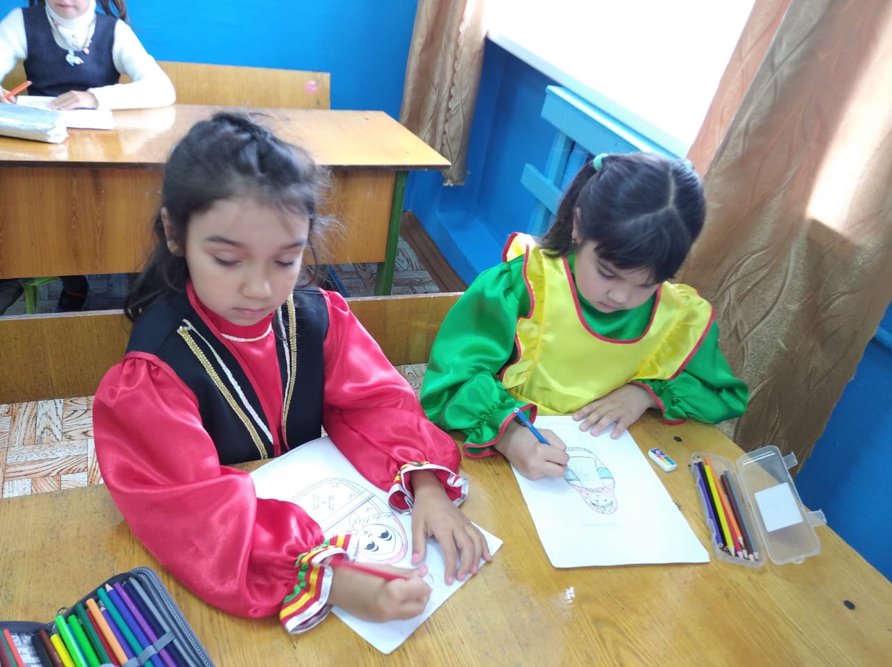 Здравствуйте. Сегодня в рамках акции посвященных Дню национального костюма в НОШ д. Турушла был проведен классный час " Я учусь в национальном костюме" Классный час провела учитель начальных классов Япарова З.А. Прошел конкурс открыток " С днём национального костюма, Республика!" , который провела Пономарева Д.Ф.