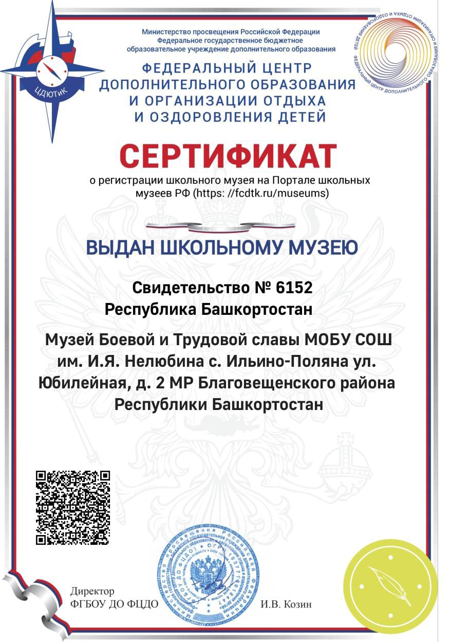 Муниципальное общеобразовательное бюджетное учреждение средняя общеобразовательная школа имени И. Я. Нелюбина села Ильино-Поляна муниципального района Благовещенский район Республики Башкортостан